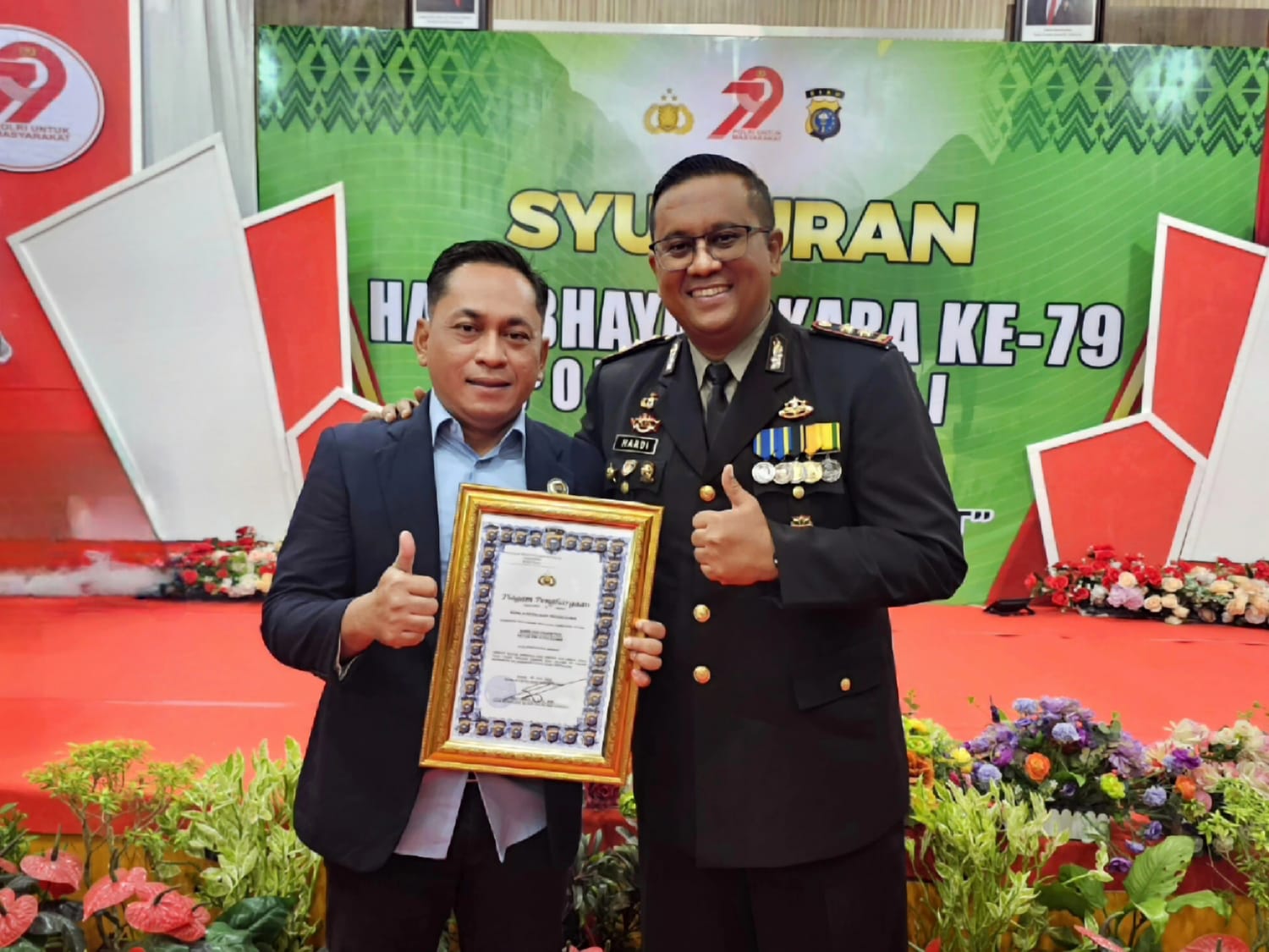 Piagam Penghargaan tersebut diserahkan langsung oleh Kapolres Dumai AKBP Hardi Dinata H, S.I.K., M.M pada acara Syukuran Hari Bhayangkara ke-79 yang digelar di Aula Lantai IV Kantor Wali Kota Dumai, Selasa (1/7/2025).