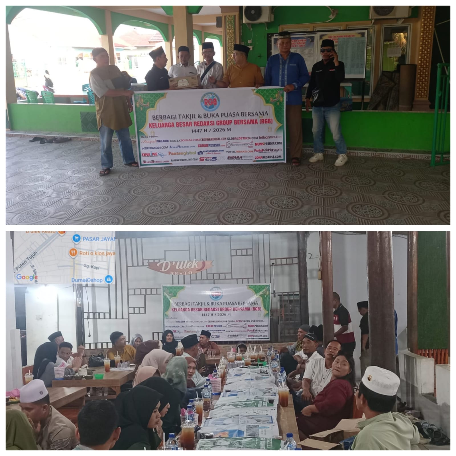(DUMAI) Sijari.net – Tim Awak Media yang tergabung dalam Redaksi Group Bersama (RGB) menggelar kegiatan sosial berbagi takjil sekaligus buka puasa bersama pada Minggu (15/3/2026). Kegiatan yang dilaksanakan pada Ramadan ke-25 tahun 1447 Hijriah ini menjadi agenda rutin RGB setiap tahun menjelang Hari Raya Idulfitri.